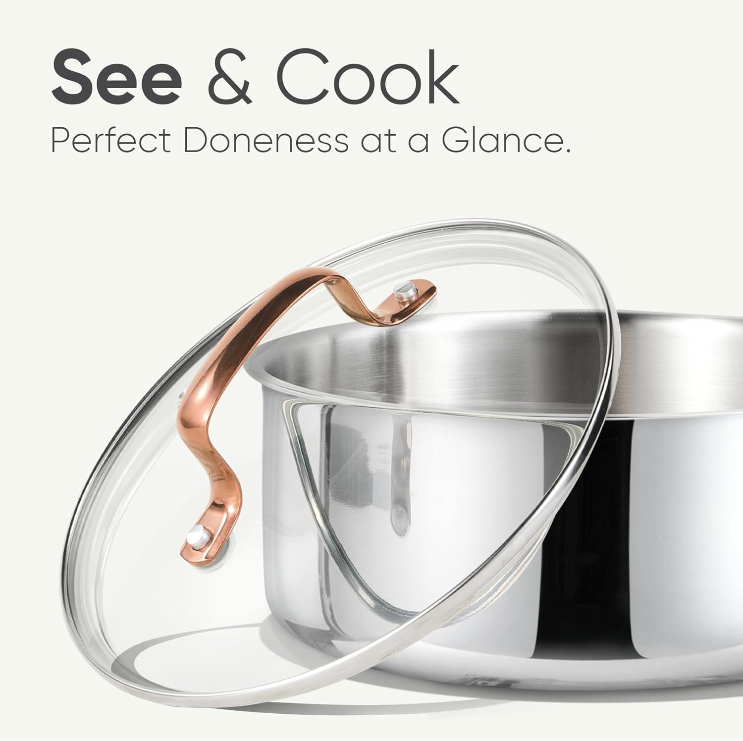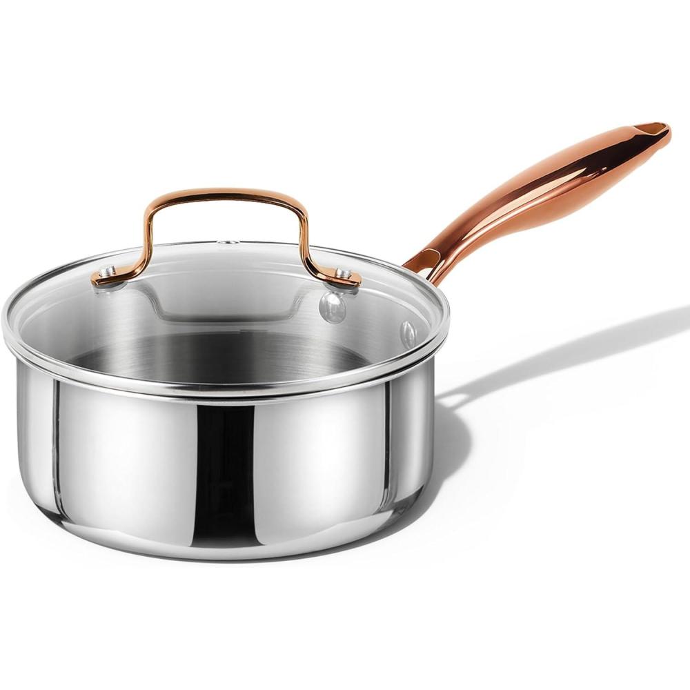 【Effortless Cleaning】 – The saucepan's mirror-polished, stain-resistant surface prevents food from sticking and is a breeze to clean. For long-lasting performance, we recommend a simple hand wash with warm, soapy water