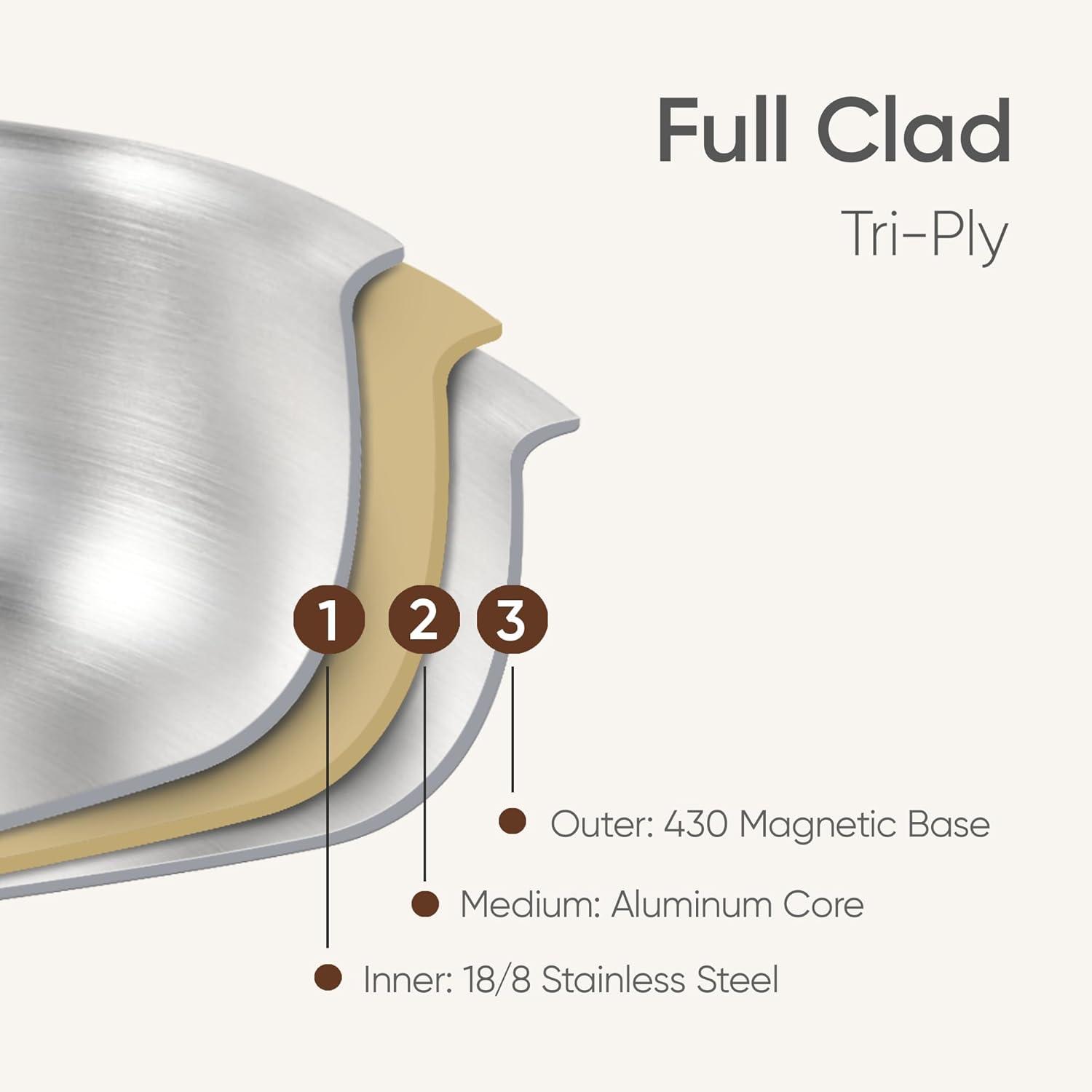 【Longer Lifespan】 – The fully clad, 3-layer metal construction ensures long-term durability and reliability while providing consistent, even heating—eliminating hot spots and delivering perfectly cooked results
