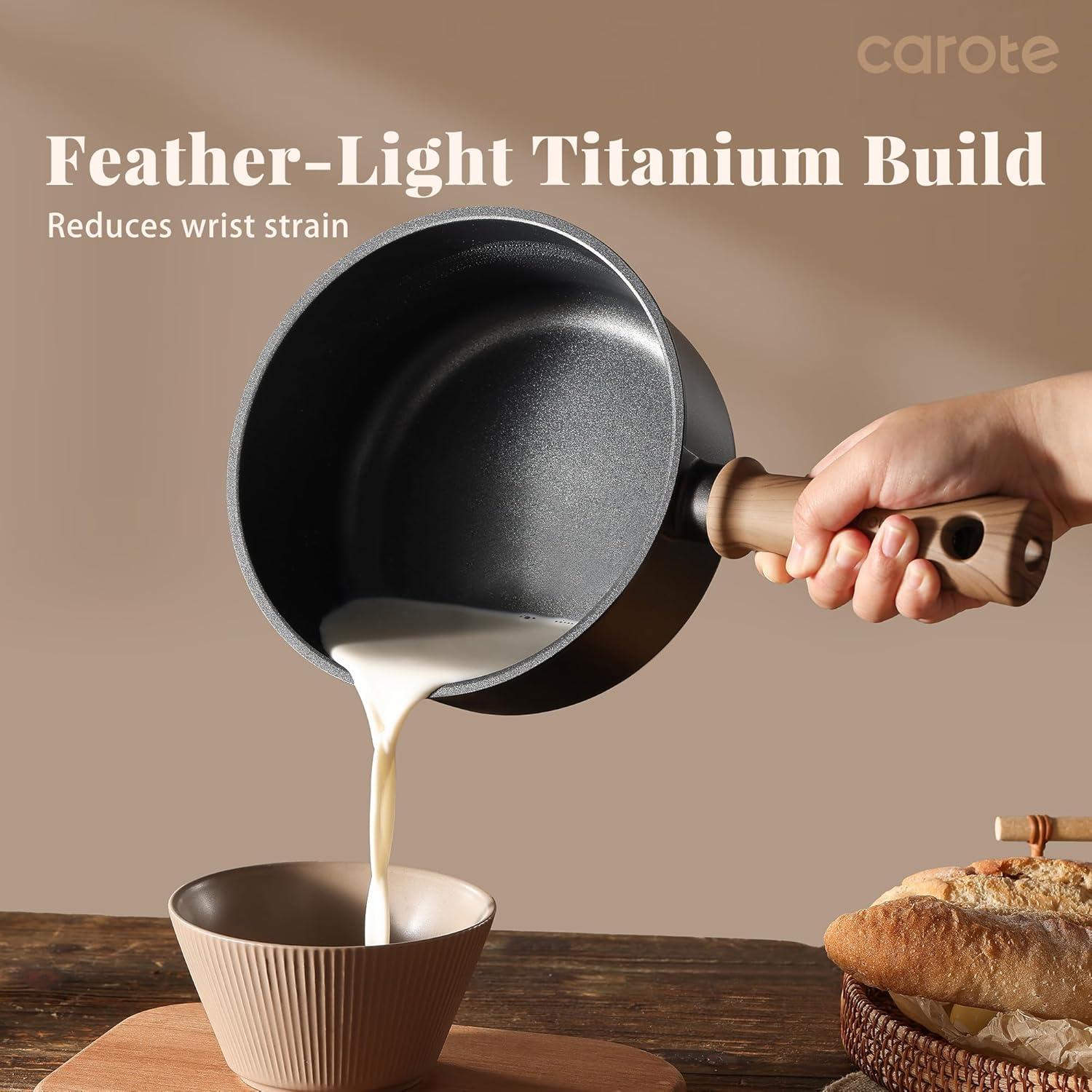 【Superior Nonstick Performance】 – Carote non stick saucepan with lid is perfect for everyday meals, providing superior nonstick performance with 100% PFOA-free and non-toxic properties. Enjoy healthier cooking with less oil intake. After use, simply rinse it with soapy water for easy and convenient cleaning