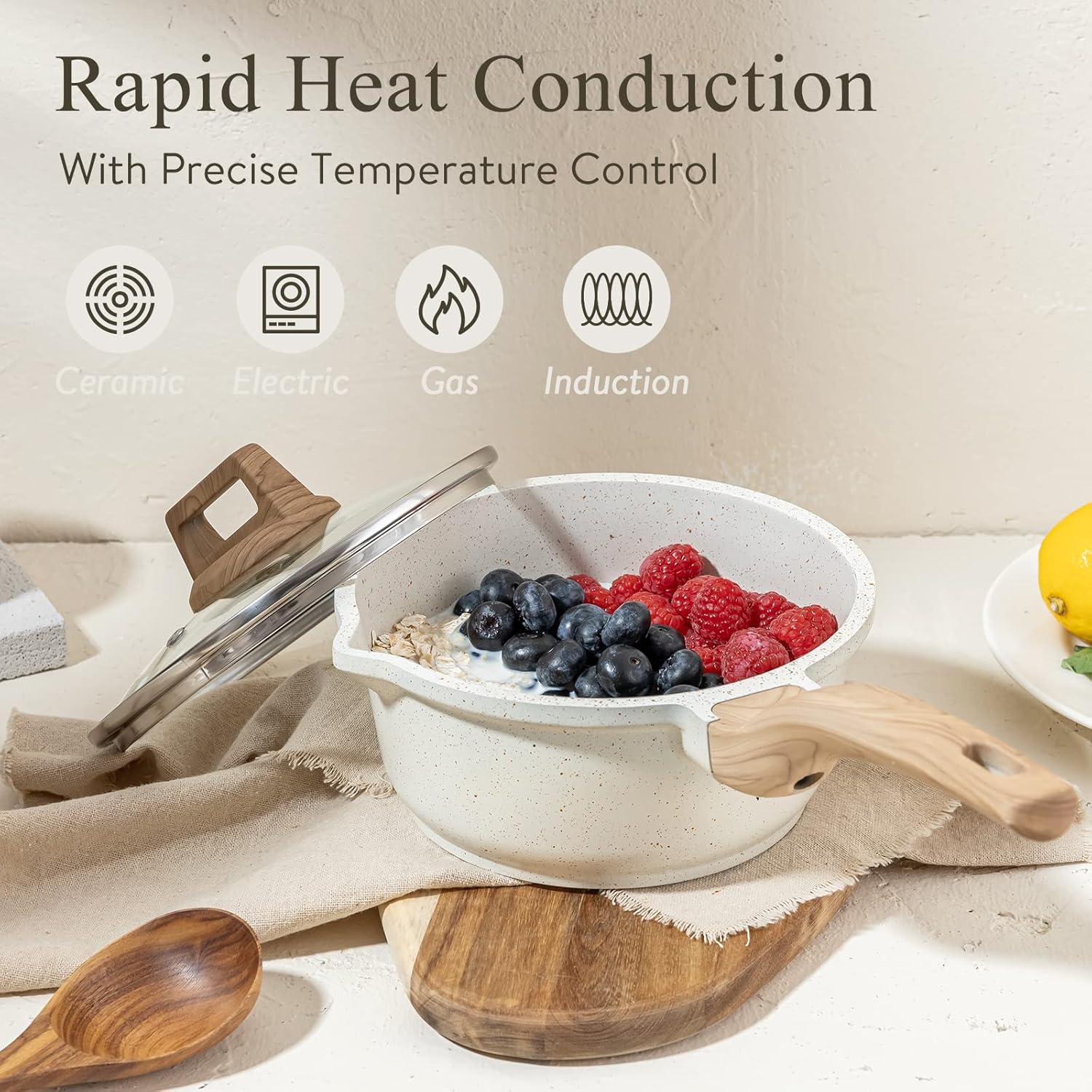 【Superior Nonstick Performance】 – Carote non stick saucepan with lid is perfect for everyday meals, providing superior nonstick performance with 100% PFOA-free and non-toxic properties. Enjoy healthier cooking with less oil intake. After use, simply rinse it with soapy water for easy and convenient cleaning