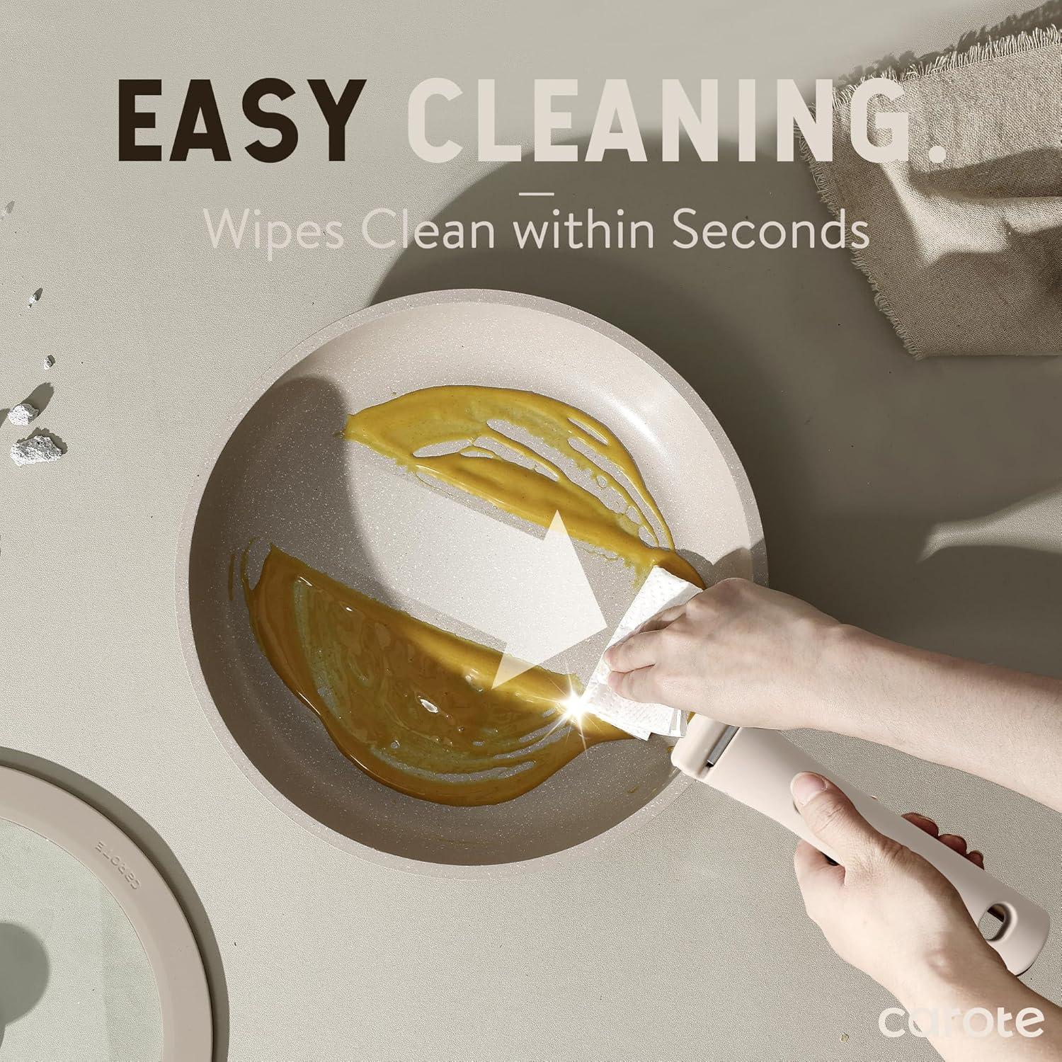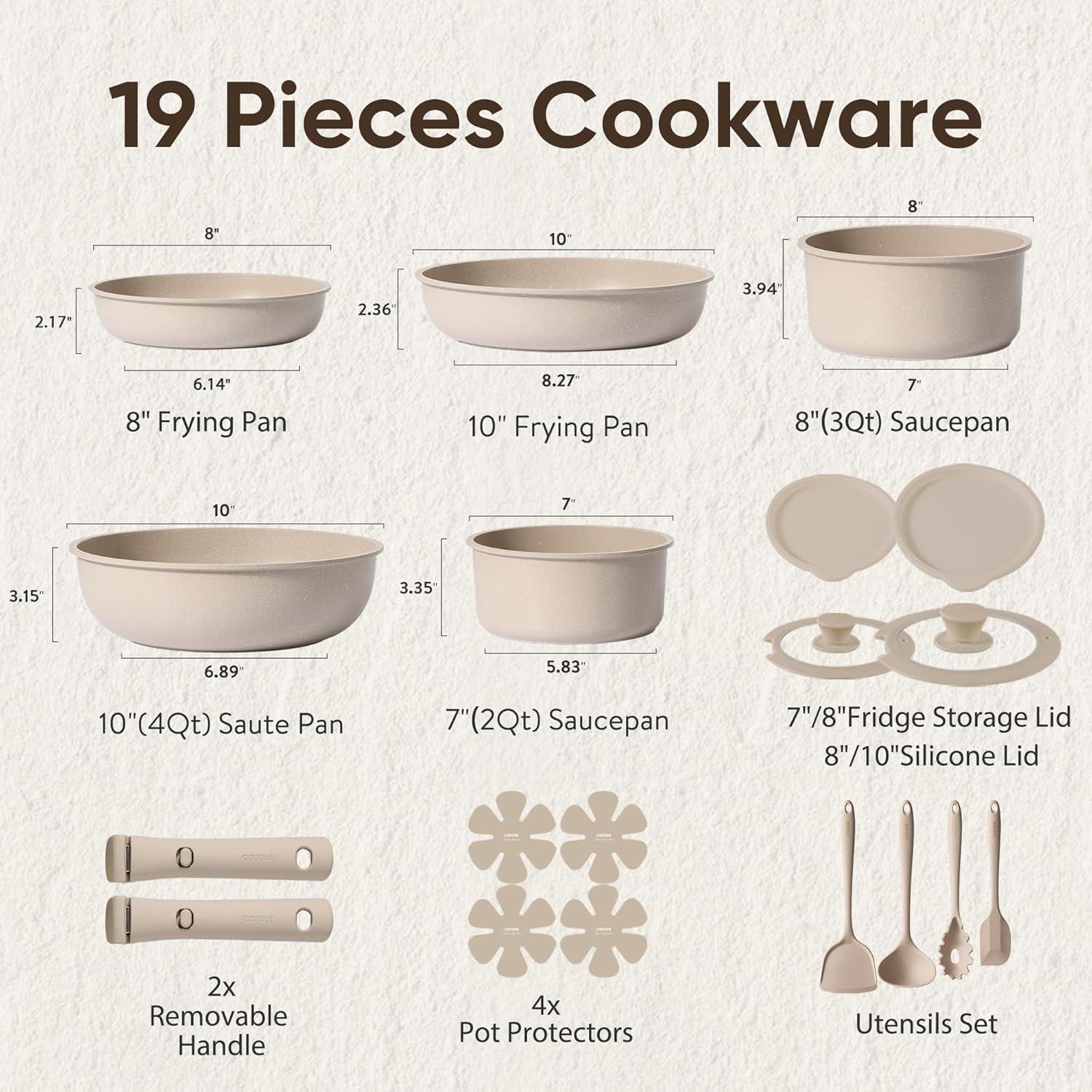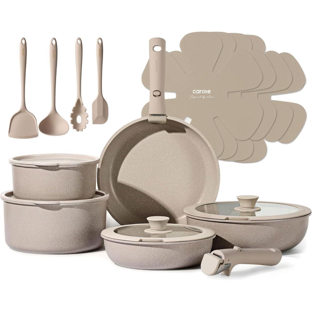 Optimal storage and easy stacking with the handles off saves up to 70% more space of Carote detachable handle pots and pans set, keeping your kitchen neat and organized.