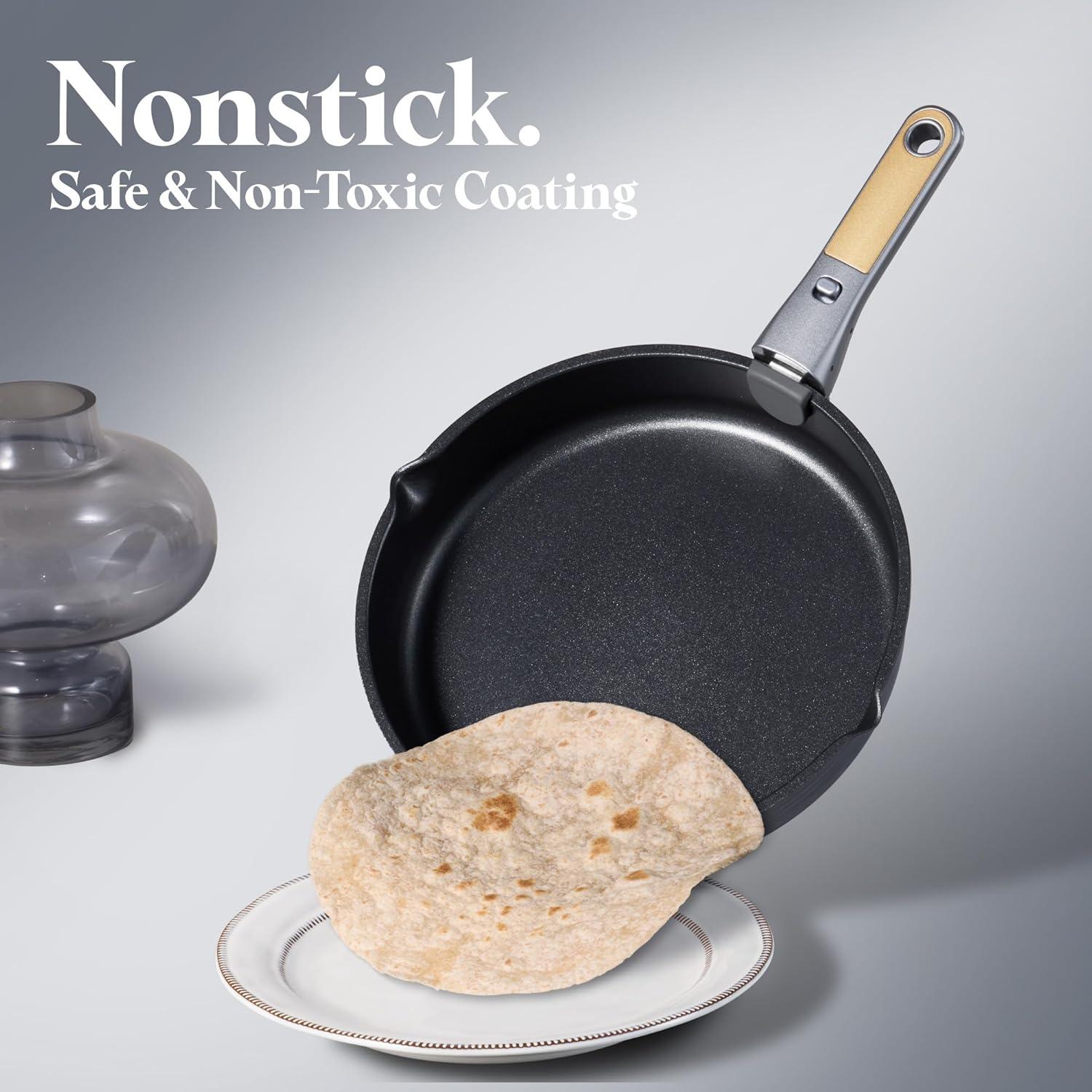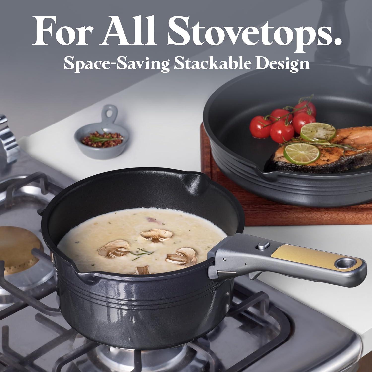 From Stovetop to Table: Detachable handles provide secure grip and stability with strong weight-bearing capacity-easily go from stovetop to oven, grill, fridge, or dining table with just a clic