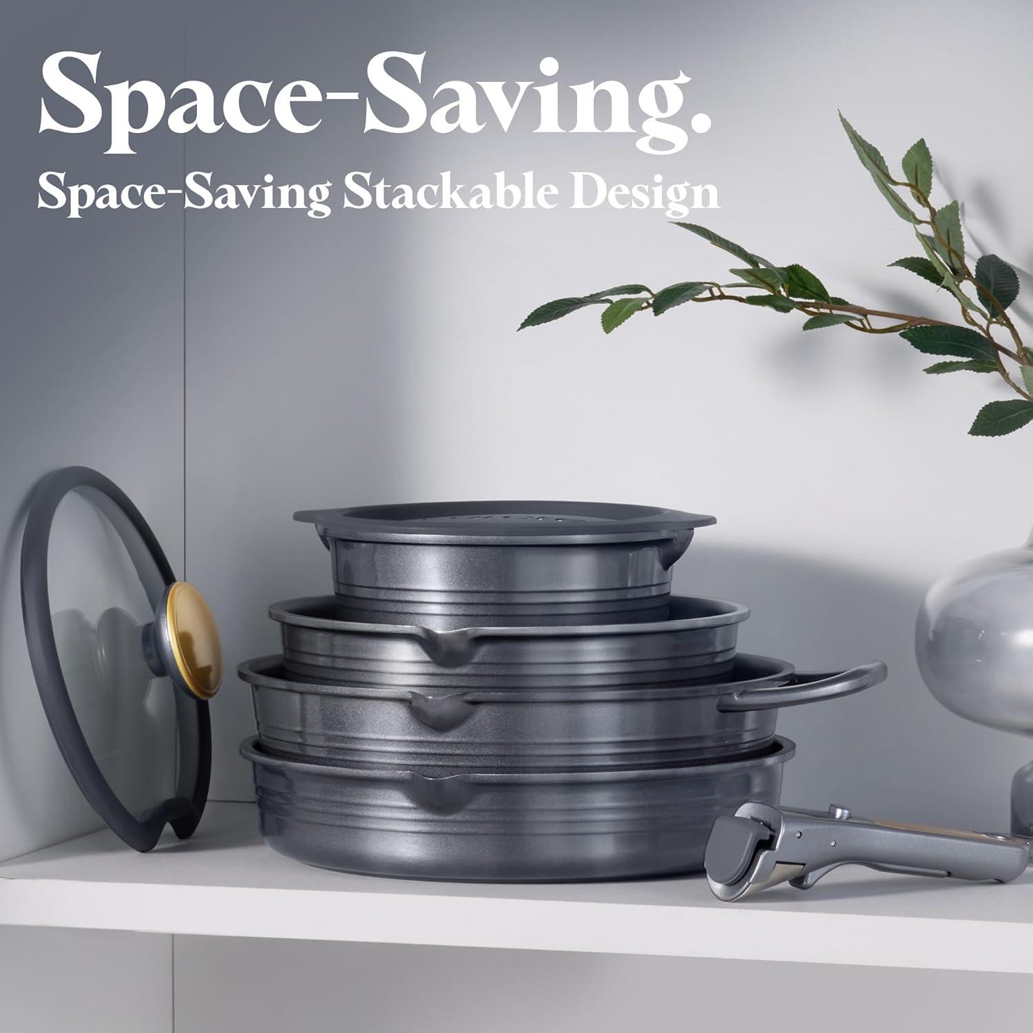 Effortless Storage: Our pots and pans nest neatly to save up to 70% of your cabinet or drawer space. This space-saving design is ideal for compact kitchens, RVs, and camping. For best results, simply use the included pot protectors when stackinge.