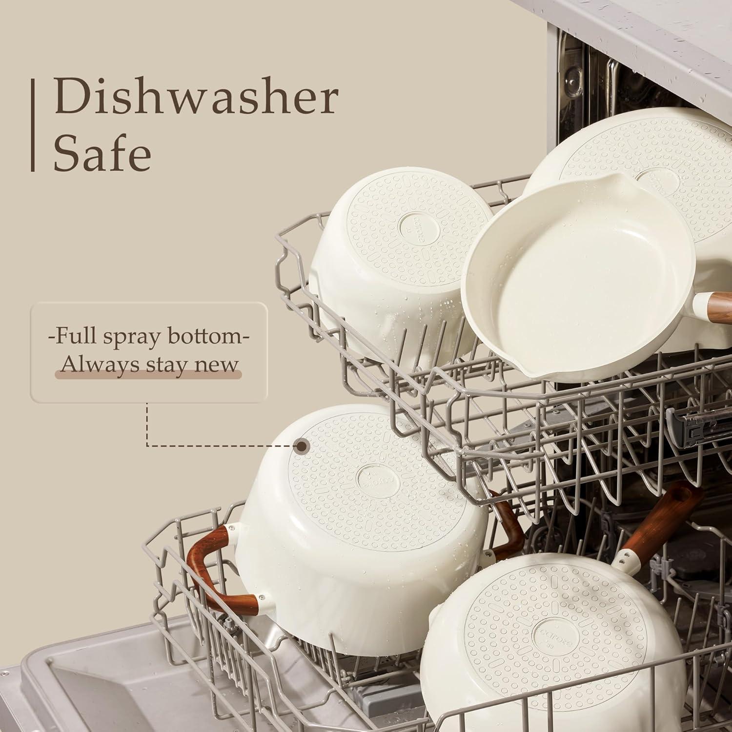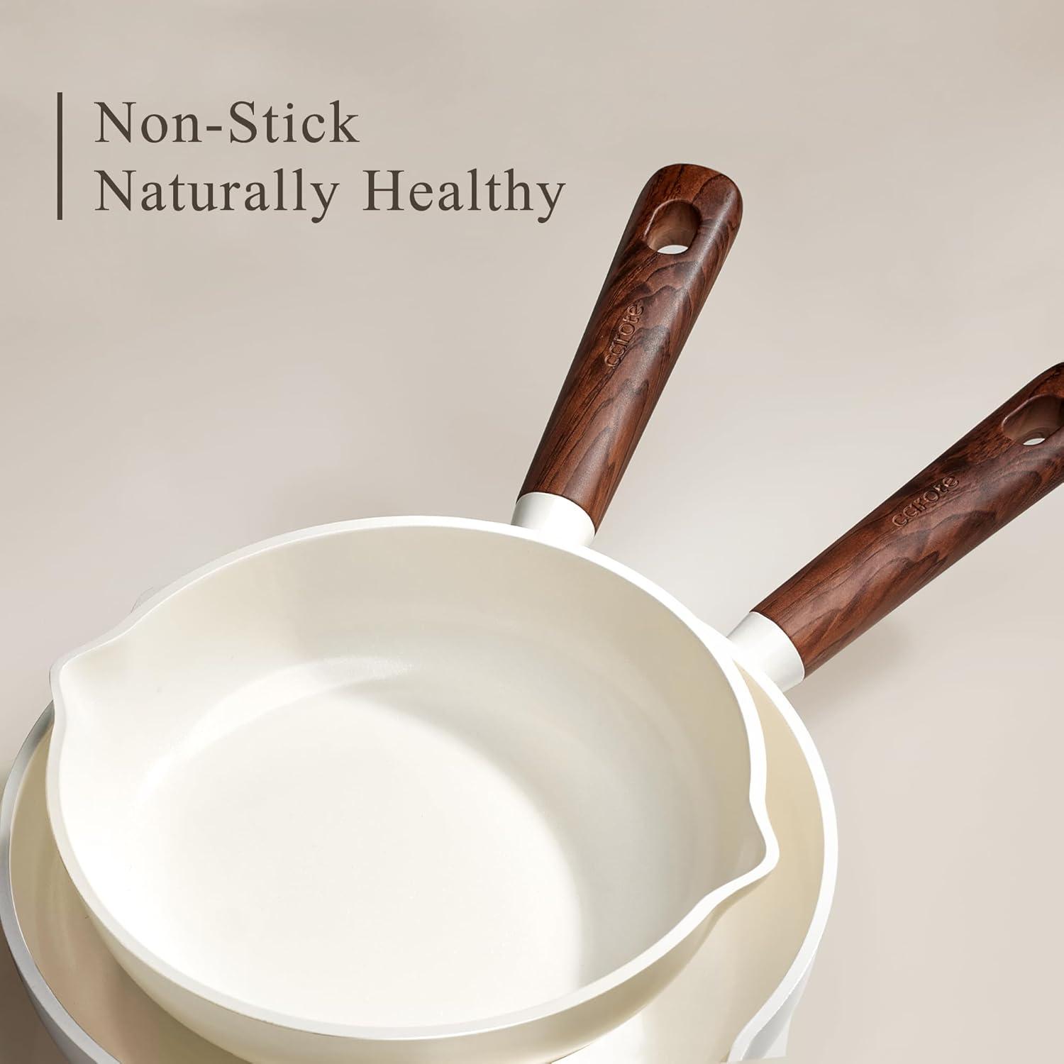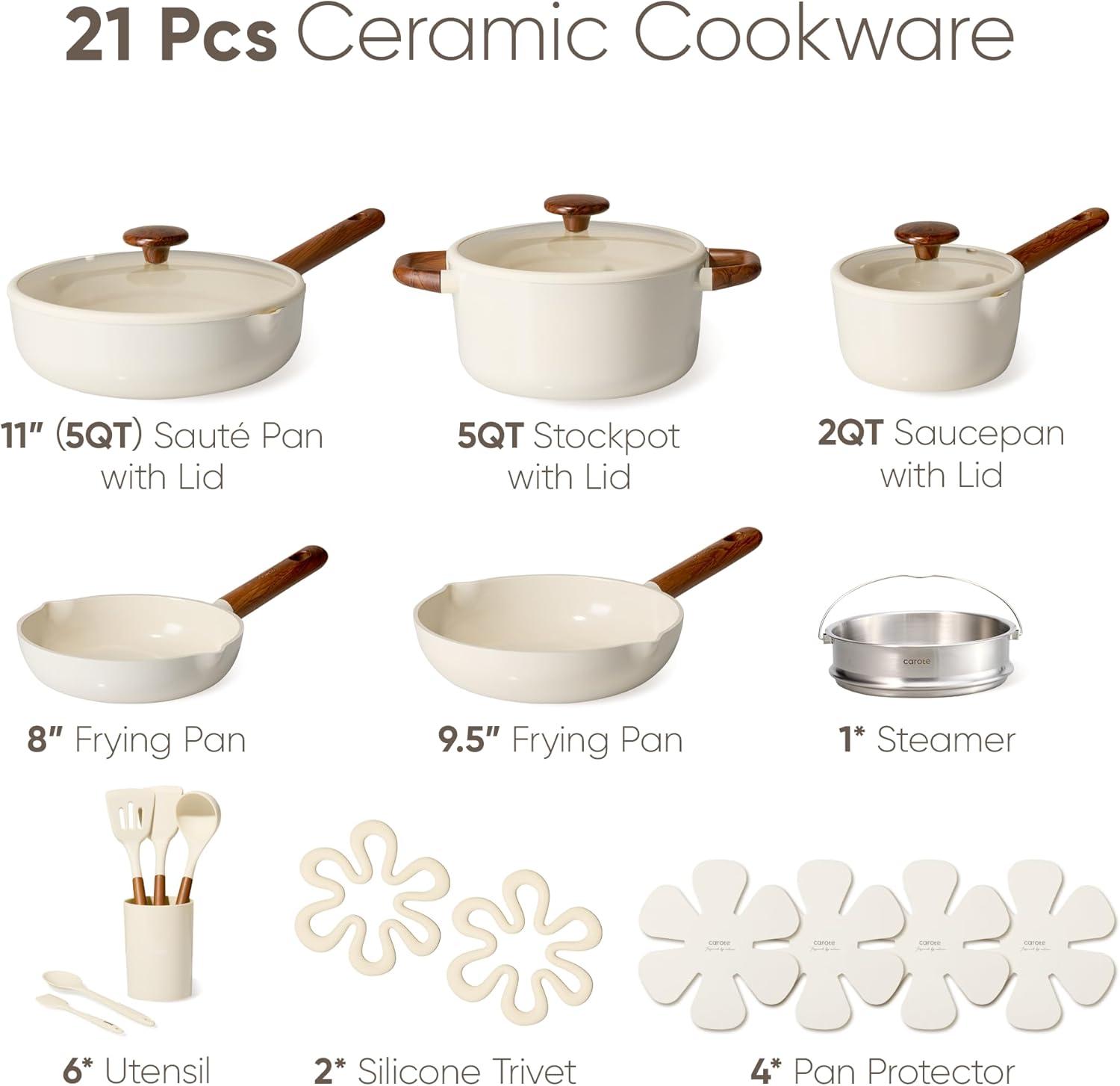 CAROTE 21pcs Cookware Set Nonstick Pots and Pans Set, Ceramic Cookware Set Induction Cookware, Non toxic Healthy Non Stick Kitchen Cooking Set, PFAS PTFE Free, White(White)