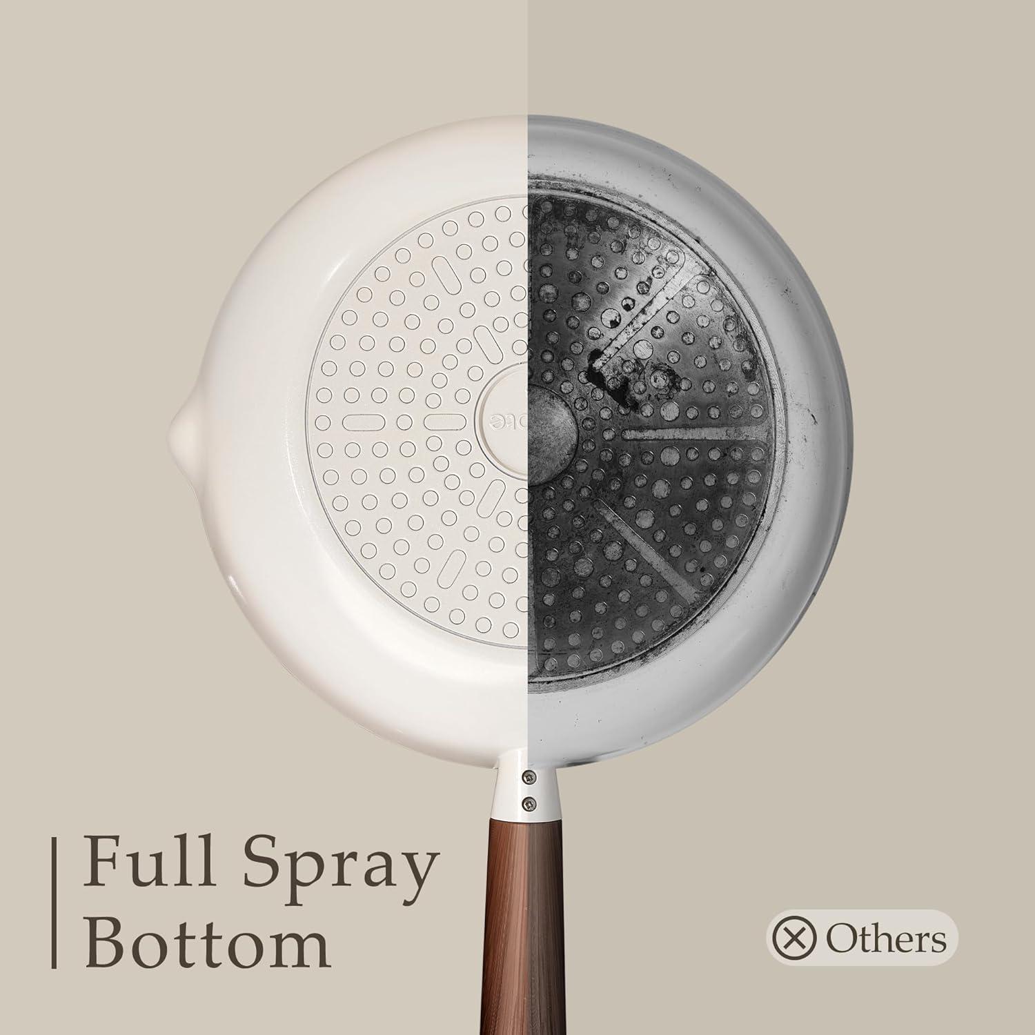Ceramic nonstick coating with durability of perfection is free of PFAS PTFE Free, and the other harmful chemicals. You can enjoy your cooking on carote cookware safely & easily.