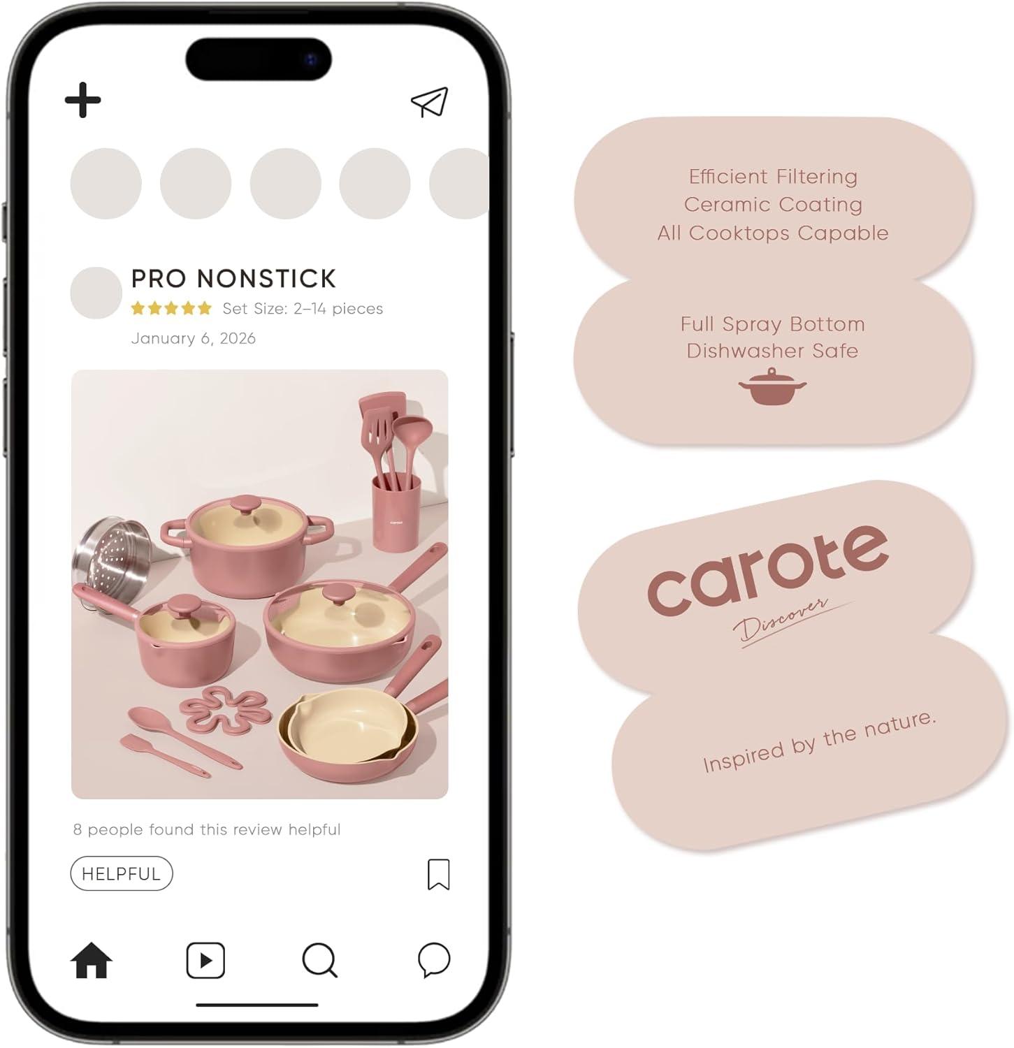 Be the first to review “CAROTE 21pcs Cookware Set Nonstick Pots and Pans Set, Ceramic Cookware Set Induction Cookware, Non toxic Healthy Non Stick Kitchen Cooking Set, PFAS PTFE Free(Pink)”