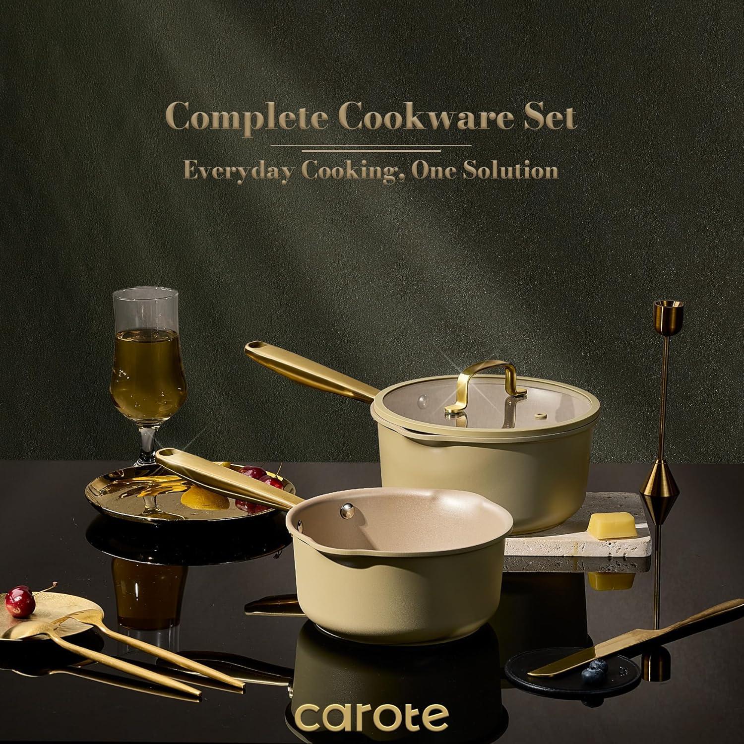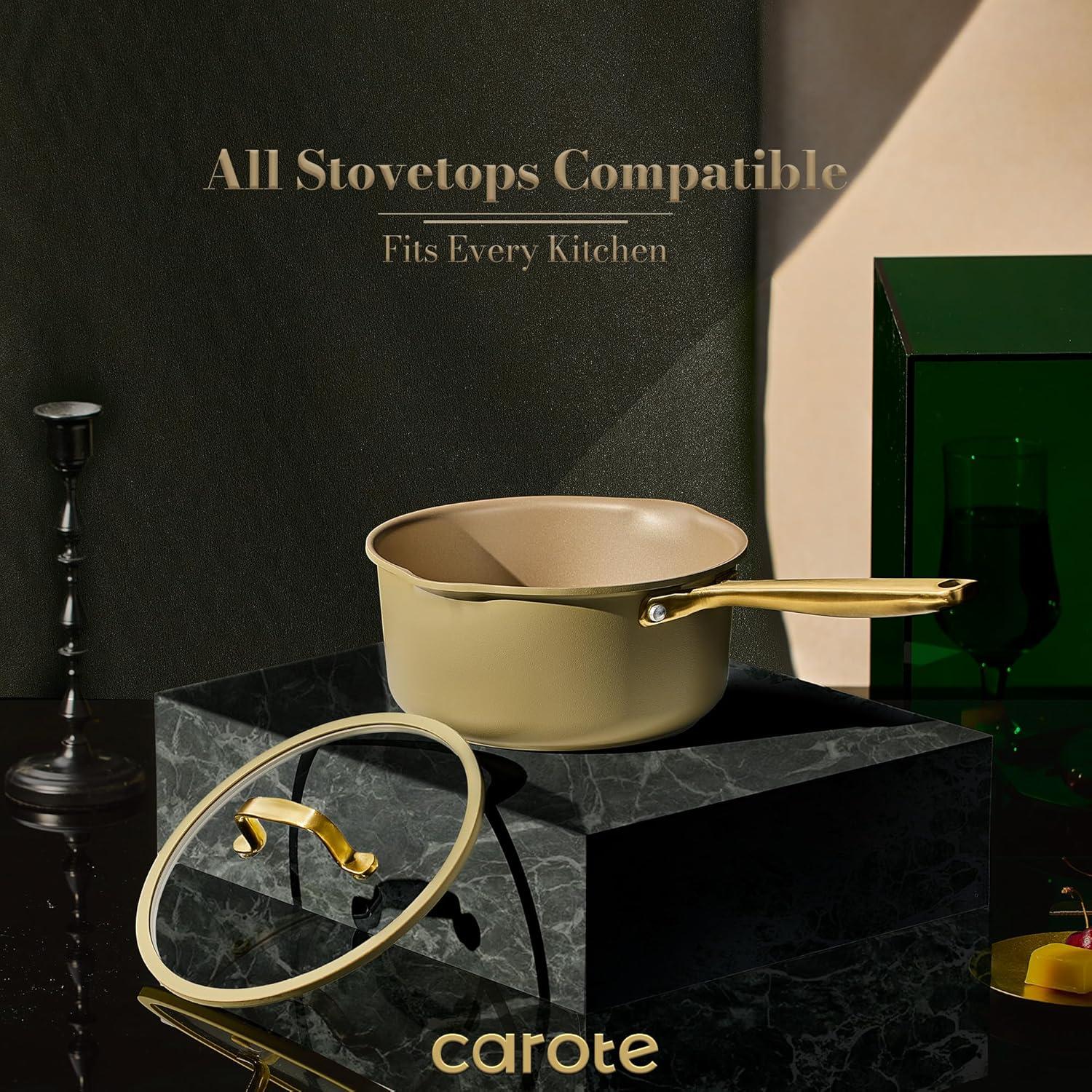 Non-Stick and Easy Care: CAROTE 2.1qt & 2.8qt saucepan set features a non-toxic, nonstick coating, which ensures excellent food release for healthier cooking with less oil, and makes cleanup a breeze—food residues wipe away effortlessly