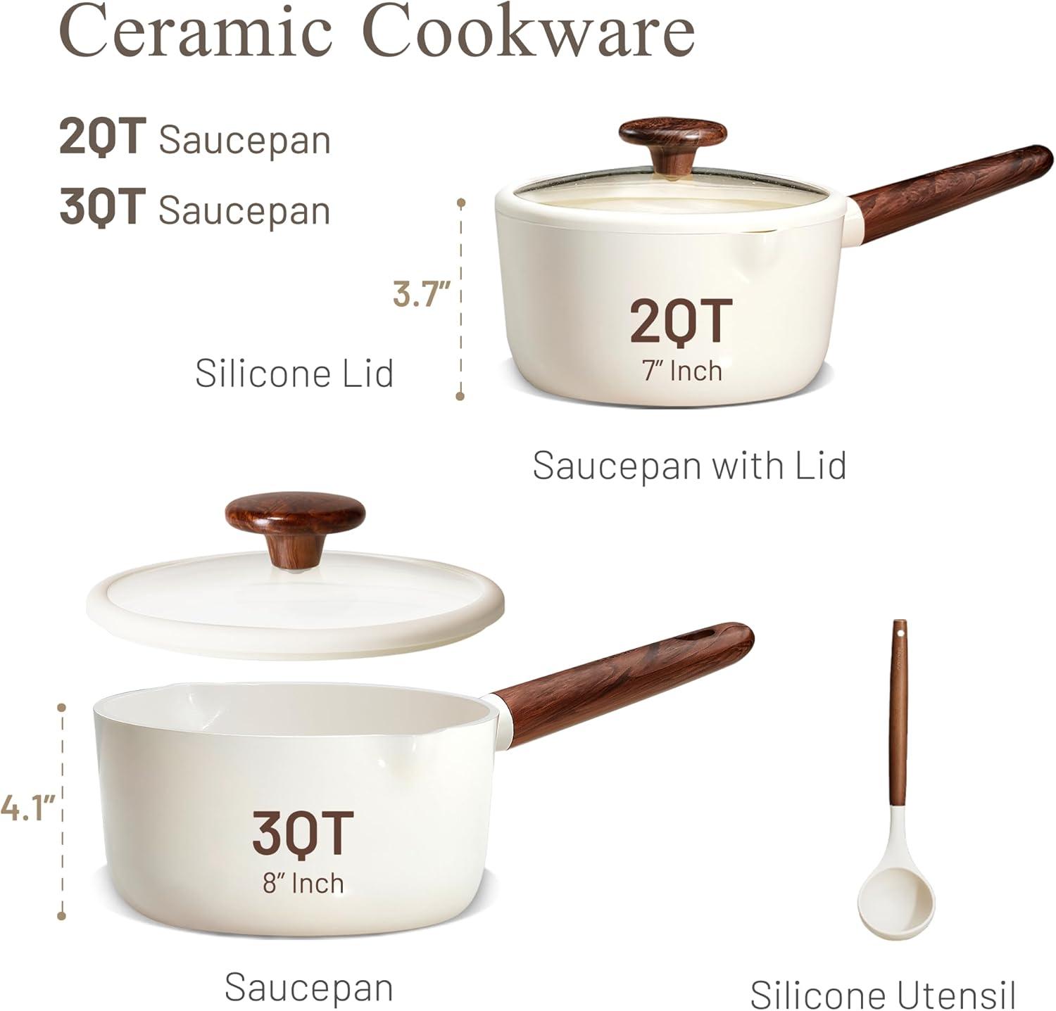 Healthy and Non-toxic: This small saucepan set features a ceramic coating, free from added PFOA, PTFE, PFOS, lead, and cadmium. It’s designed to give you a healthier cooking experience and complete peace of mind