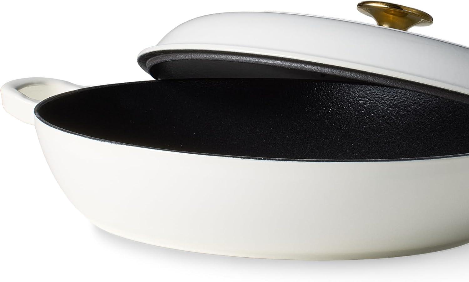CAROTE 3.5QT Enameled Cast Iron Braiser Pan, Shallow Dutch Oven Casserole Skillets, Non-Toxic Cast Iron Pot with Lid for Grilling, Searing, Baking, Dual Handles, All Stovetop Compatible, White(White)