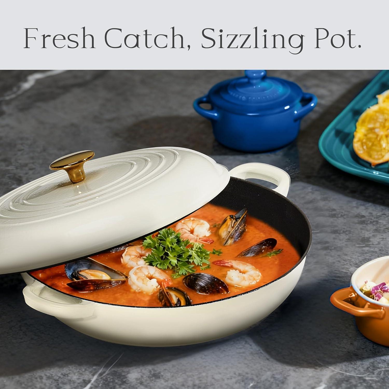 Super Easy to Clean: This enameled cast iron shallow dutch oven features a smooth, effortless-to-clean porcelain surface. With its naturally non-stick coating free of chemicals, it requires no seasoning—ready to use right away to deliver clean, delicious flavors. After cooking, simply wash with warm soapy water for effective cleaning and extended durability.