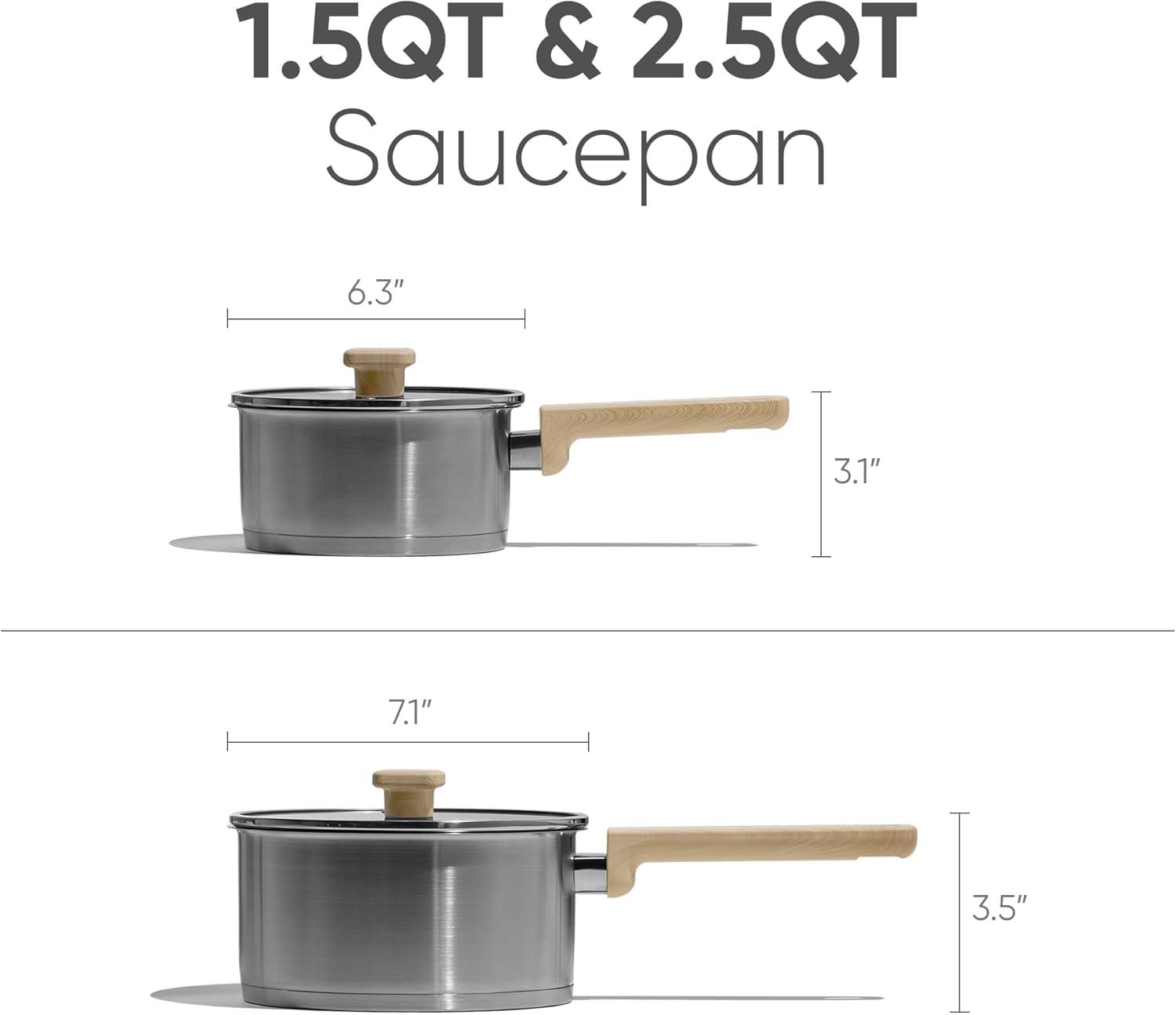 【Healthy and Non-toxic】Crafted from food-grade stainless steel, this saucepan set contains no PFAS, PFOA, PFOS, or other harmful chemicals, ensuring a safer cooking experience