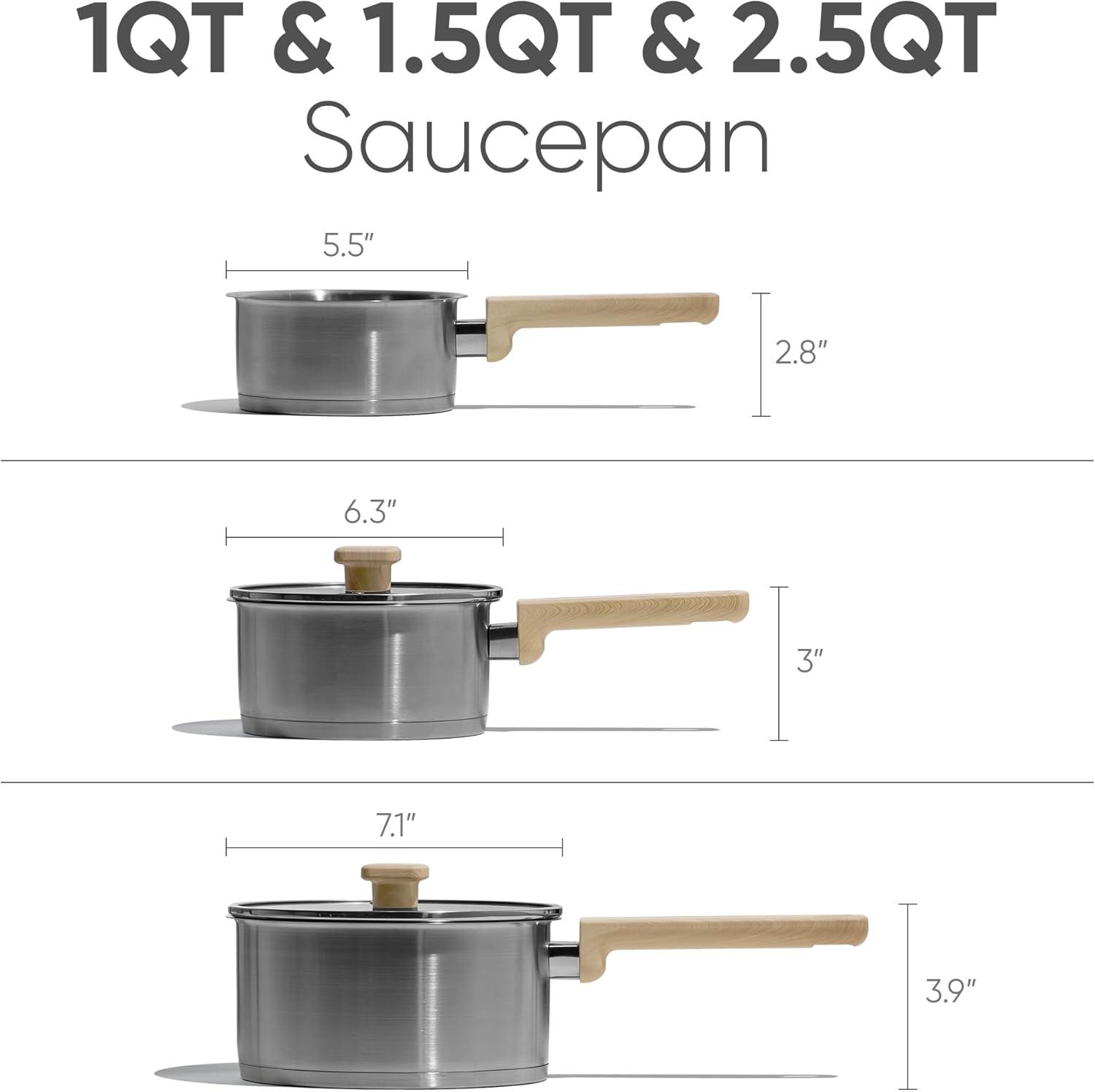 【Healthy and Non-toxic】Crafted from food-grade stainless steel, this saucepan set contains no PFAS, PFOA, PFOS, or other harmful chemicals, ensuring a safer cooking experience