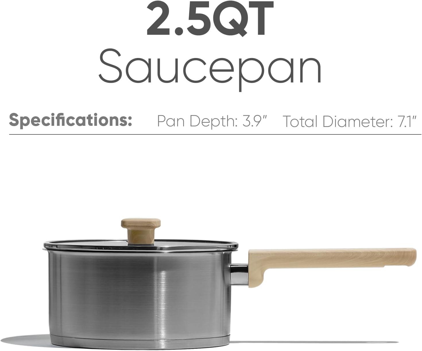 【Healthy and Non-toxic】Crafted from food-grade stainless steel, this saucepan set contains no PFAS, PFOA, PFOS, or other harmful chemicals, ensuring a safer cooking experience