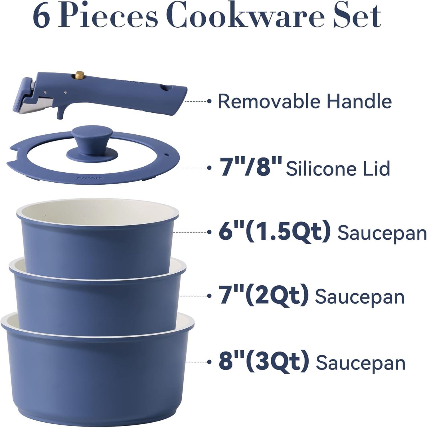 Be the first to review “CAROTE 6pcs Nonstick Sauce Pan Sets with Lid 3 Sizes(1.5QT, 2QT & 3QT), Non Stick Cooking Pot with Detachable Handle, Kitchen Sauce Pots Induction Pot, PFOA FREE, Dishwasher Safe, Purple(Blue)”