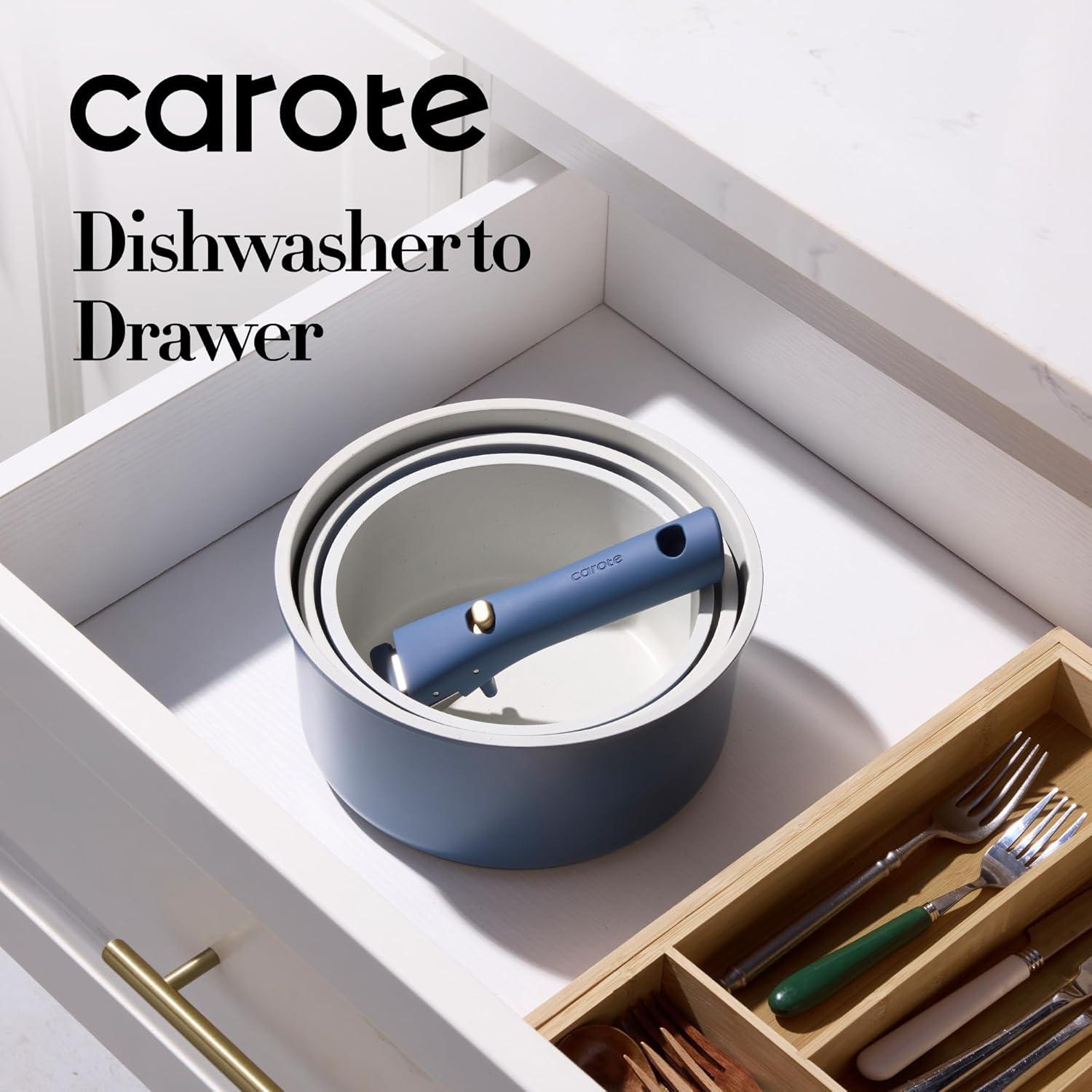 Optimal storage and easy stacking with the handles off saves up to 70% more space of Carote detachable handle pots and pans set, keeping your kitchen neat and organized.
