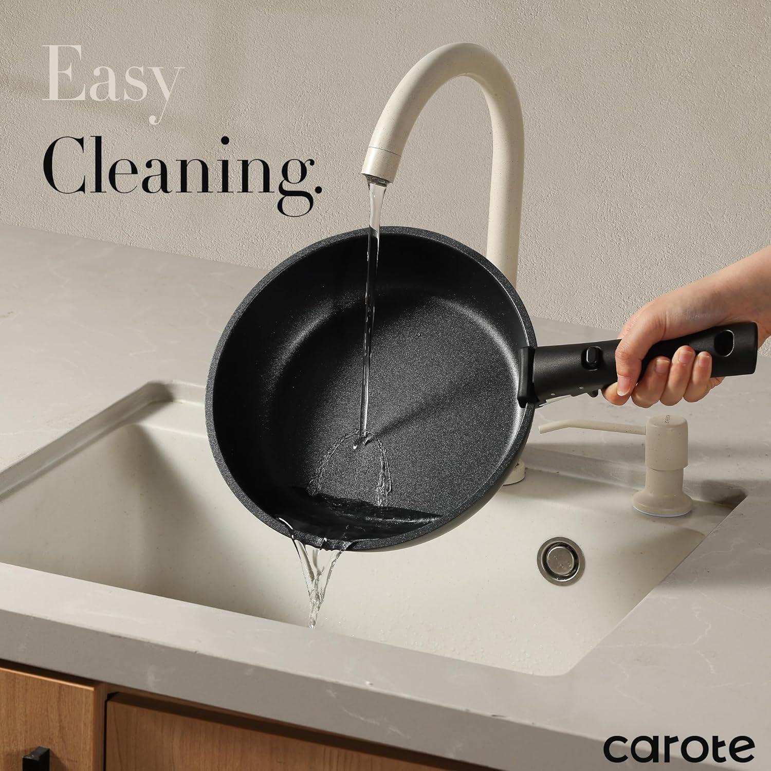 Balanced convenience-rich features, rapid & even heat transfer, and nonstick performance as the same as other Carote cookware sets.