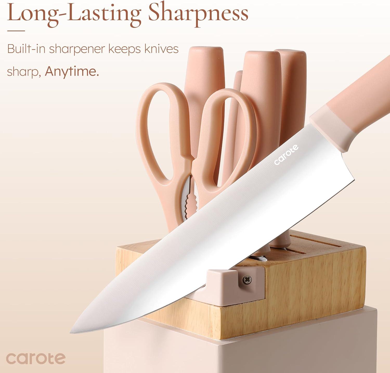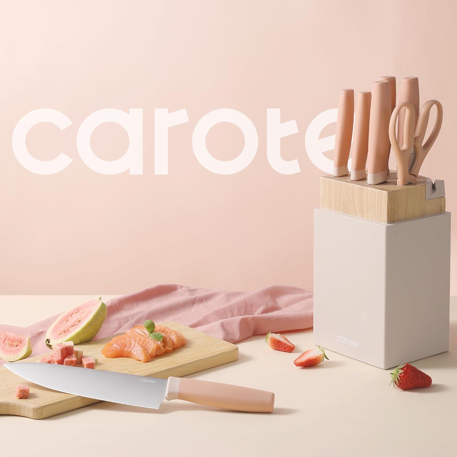 Stylish Color Options: The CAROTE Kitchen Knife Set with Block offers a range of soft, modern colors to complement any kitchen decor. Whether you prefer pink or green, these knives add a fresh, stylish touch to your kitchen while delivering top-tier performance.