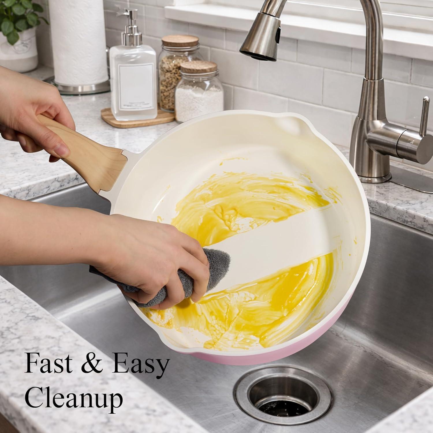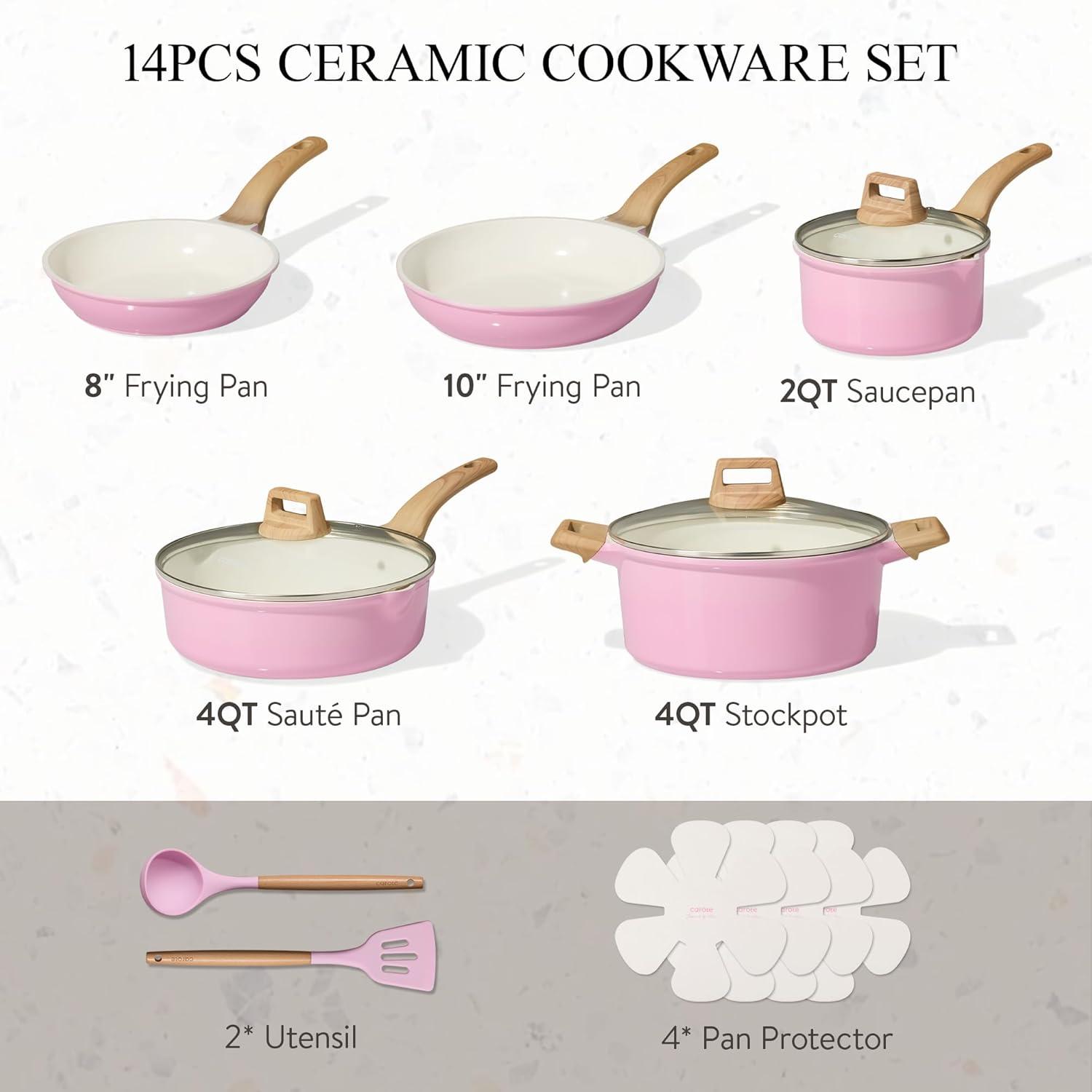 CAROTE Ceramic Cookware Set, 14 PCS Pots and Pans Set Non Stick, Pot and Pan Set with Frying pan, Induction Ready Cooking Set for Kitchen, PFOS/PFOA/PFAS Free, Pink(Pink)
