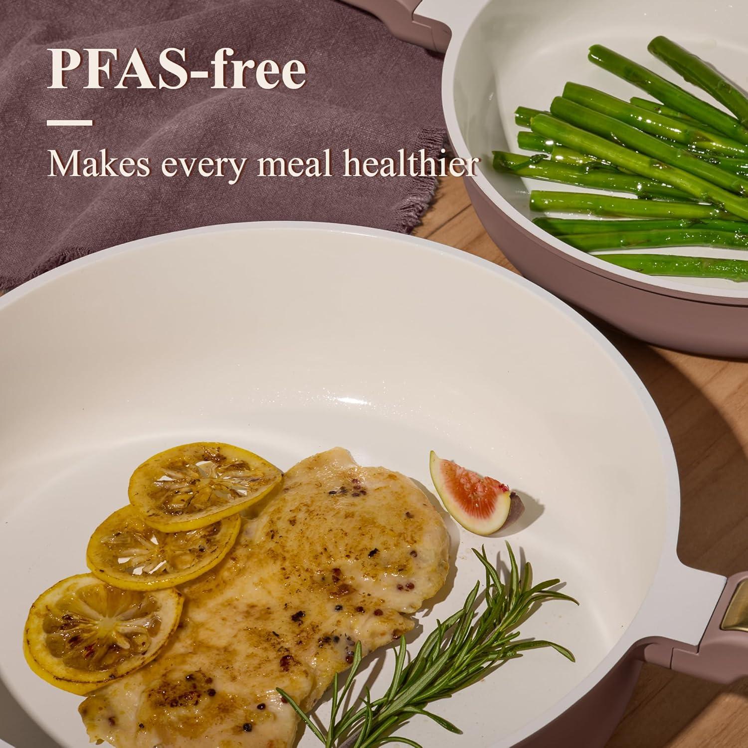 Ceramic nonstick coating with durability of perfection is free of PFOA, PFOS, and the other harmful chemicals. You can enjoy your cooking on carote cookware safely & easily.