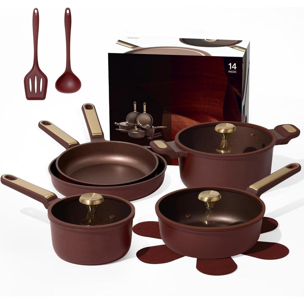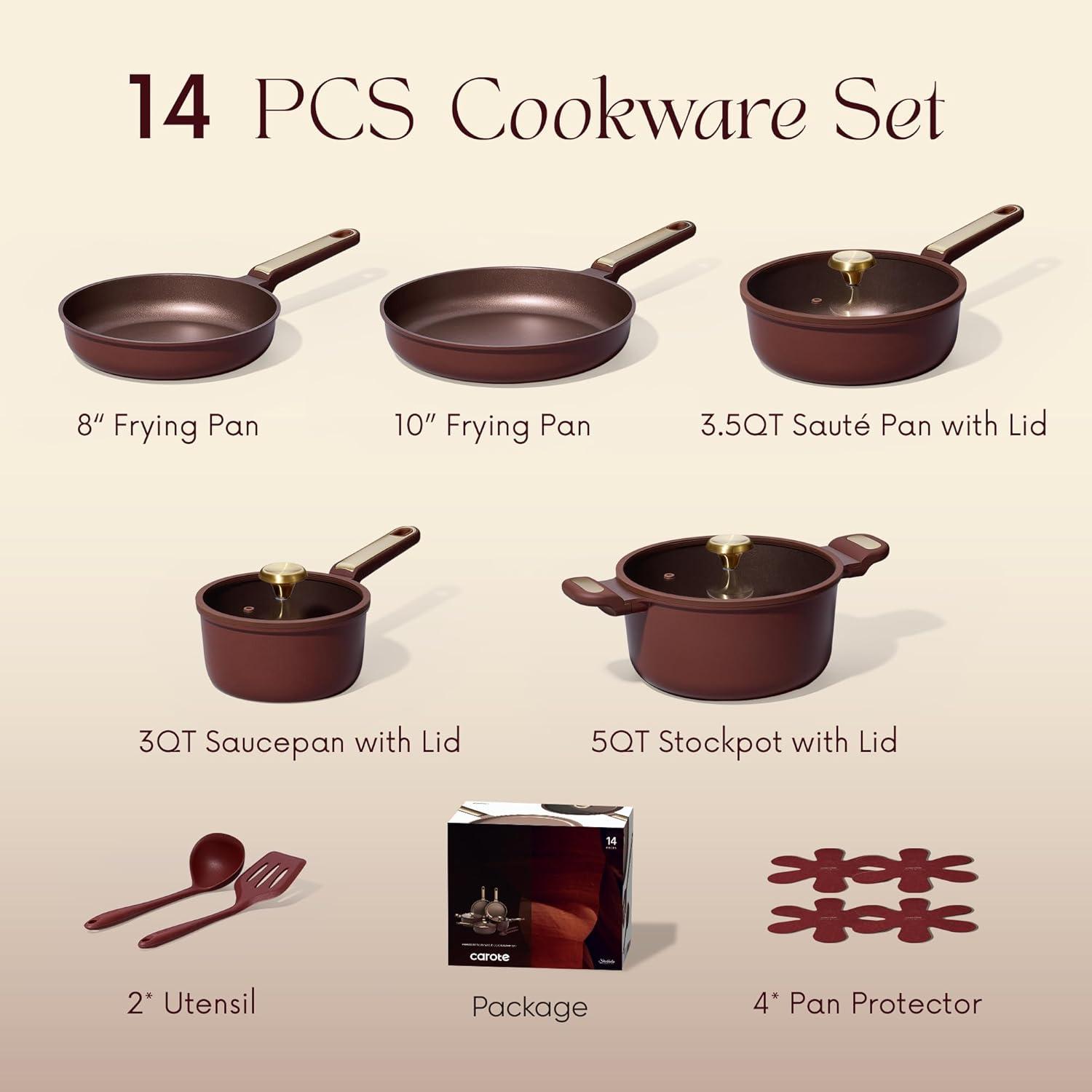 NON-TOXIC & EASY TO CLEAN: Carote Ceramic Cookware Set without PTFE, PFOA, PFAS, lead, or cadmium. Its slick, nonstick surface prevents sticking for easy wipe-and-go cleaning.