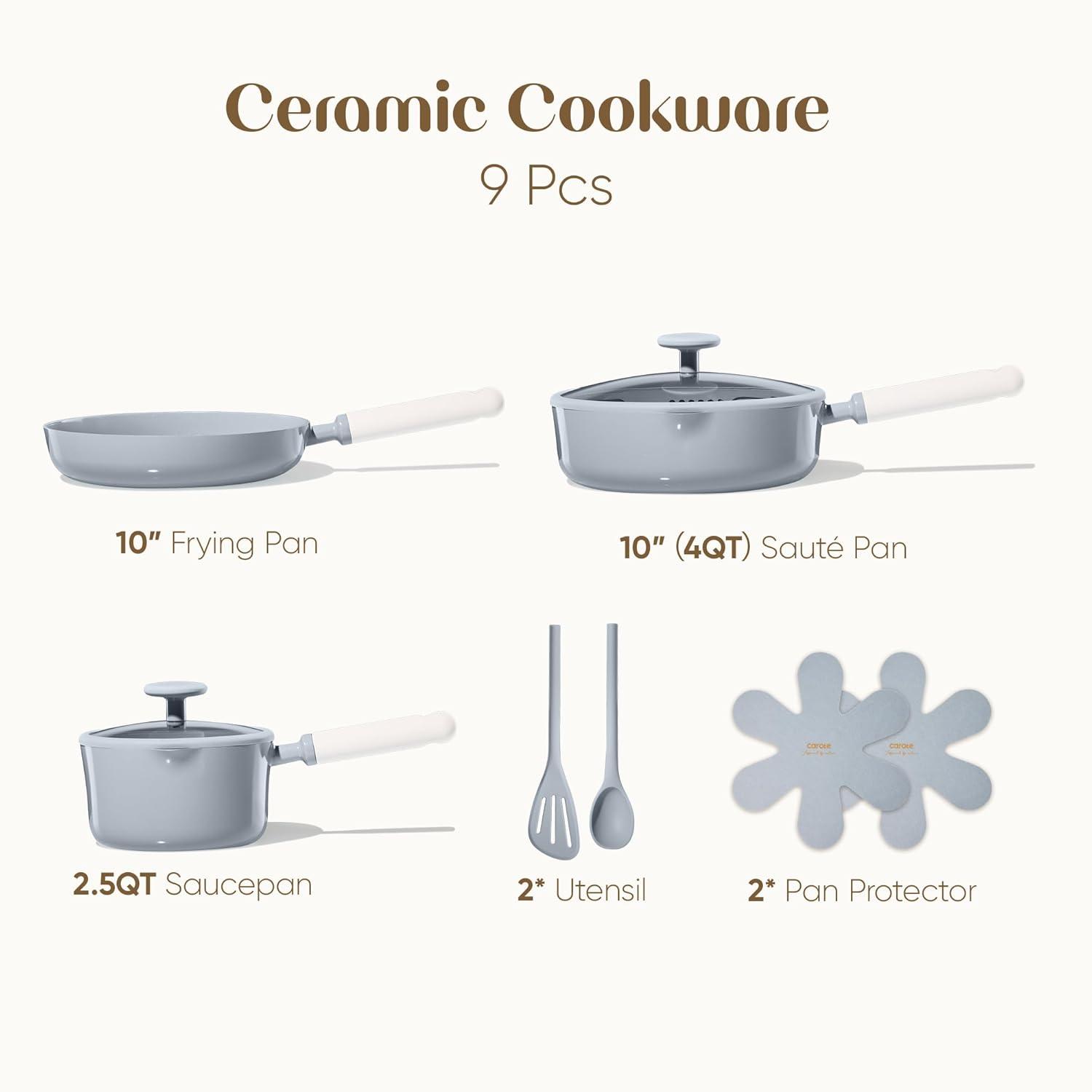 CAROTE Ceramic Cookware Set Nonstick, 9pcs Pots and Pans Set Non stick, Non-Toxic & PFAS-Free,Dishwasher/Oven Safe, RV/Camping Cookware Set,Sauce Pan with Lid, Green(Blue)