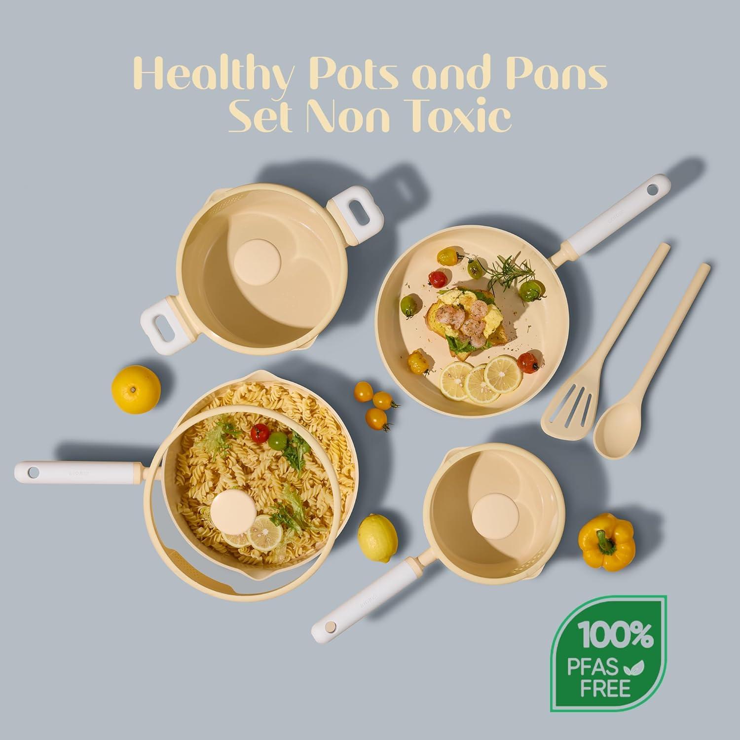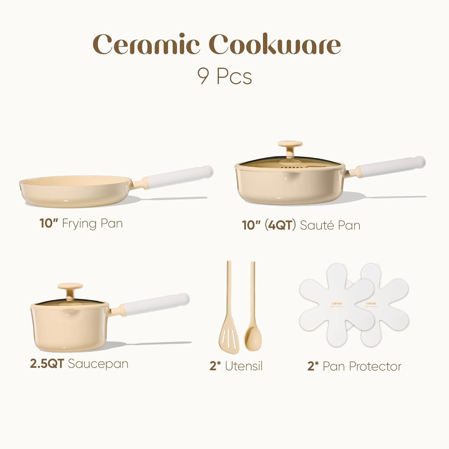 CAROTE Ceramic Cookware Set Nonstick, 9pcs Pots and Pans Set Non stick, Non-Toxic & PFAS-Free,Dishwasher/Oven Safe, RV/Camping Cookware Set,Sauce Pan with Lid, Green(Yellow)