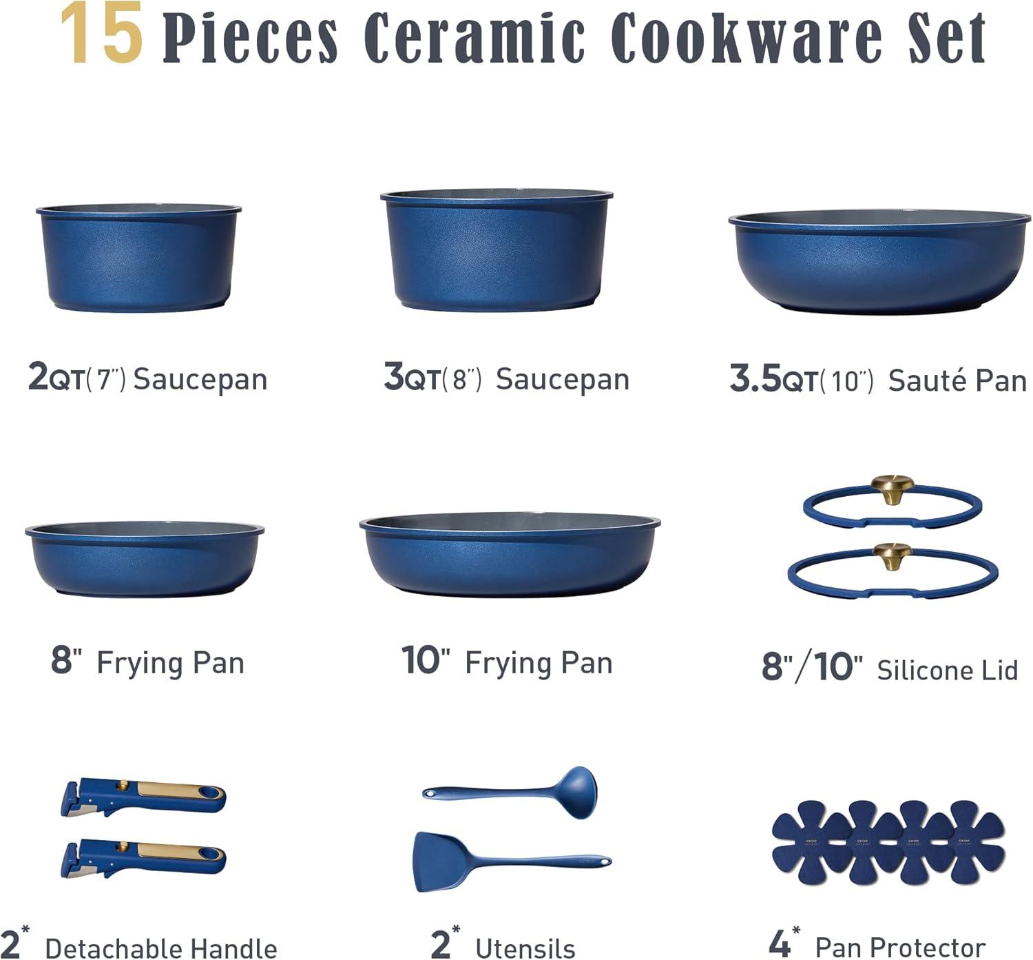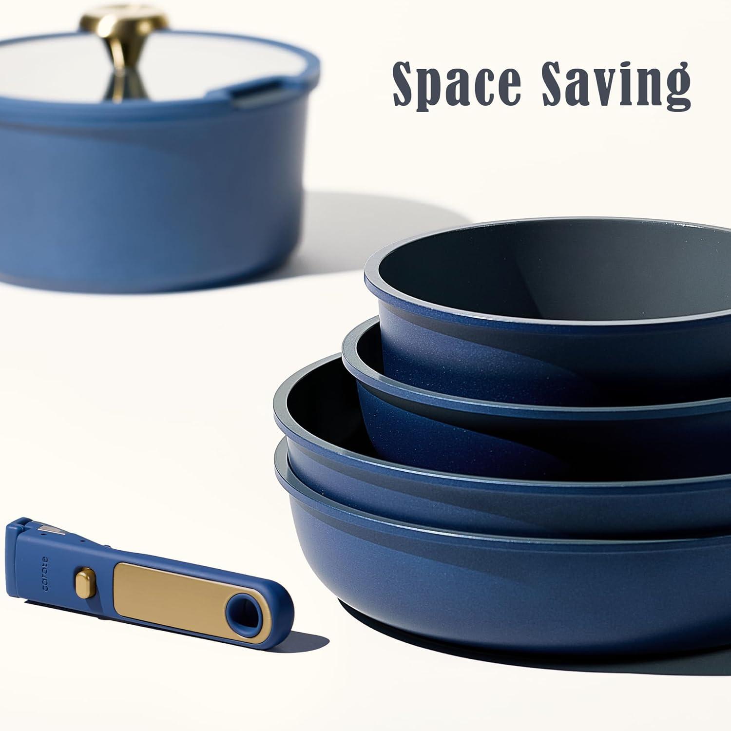 imageCAROTE GreenampampGold Nonstick Cookware Set15Pcs Pots and Pans Set Non Stick DetachableRemovable HandleKitchen Cooking Set Dishwasher Safe RV Kitchen Pot and Pan Induction CookwareSymphony Blue
