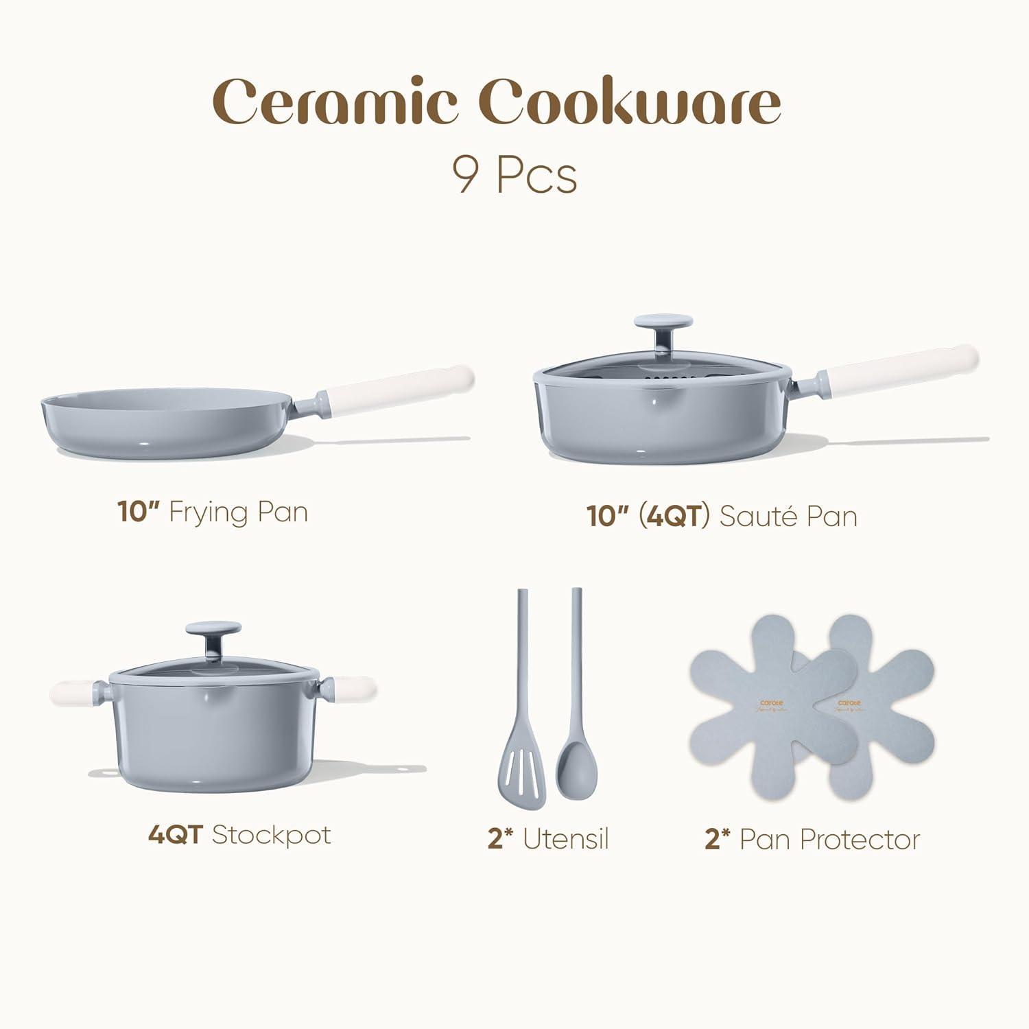 CAROTE Pots and Pans Set Nonstick, Ceramic Cookware Set, Yellow Cooking Set Kitchen Induction Set with Steamer, PFAS PTFE Free,9 Piece(Blue)